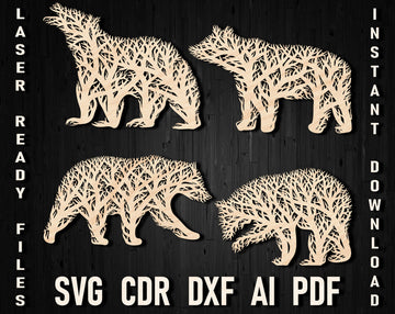Bear Tree Svg Laser Cut Shape Panel Decor Template