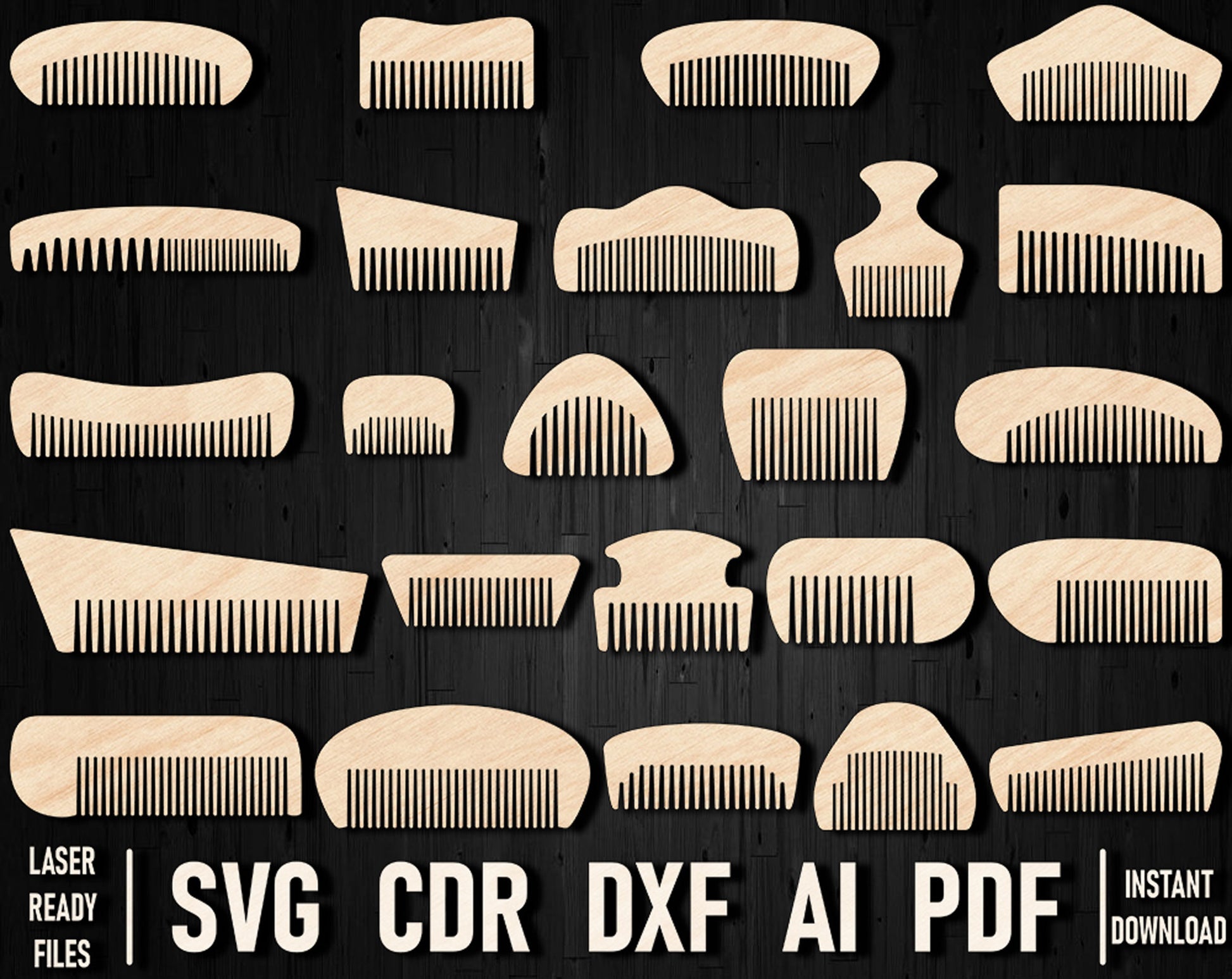 Master the art of grooming with our laser-cut comb files! Create sleek, stylish combs for hair or beards using wood or plywood, and bring that ultimate hipster vibe to life. From laser-cut beard comb templates to wooden hair comb designs, this bundle has it all – keep your customers ahead of the curve. Perfect for Father's Day gifts, barber shop decor, or anyone in need of a solid grooming tool, this set is as versatile as it gets.