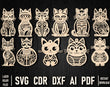Make lovely cat-themed Christmas decorations with this Cats SVG Bundle! This cut-out ornament file is designed for use with Glowforge, Xtool and Silhouette machines, allowing you to cut detailed cat shapes from wood, acrylic, or leather. Great for Christmas decorations, pet gifts, or DIY home decor, this bundle includes SVG, DXF and CDR formats. Download now and start making your own festive cat decorations today!