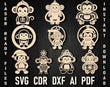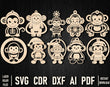 Monkey Christmas Ornaments Decor SVG Bundle – Laser Cut Files for Glowforge, Cricut & Silhouette DXF, CDR