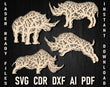 Rhinoceros Tree Wall Art SVG/DXF/AI Laser Cut Bundle – Files for Glowforge, Cricut & Silhouette, African Animal Panels