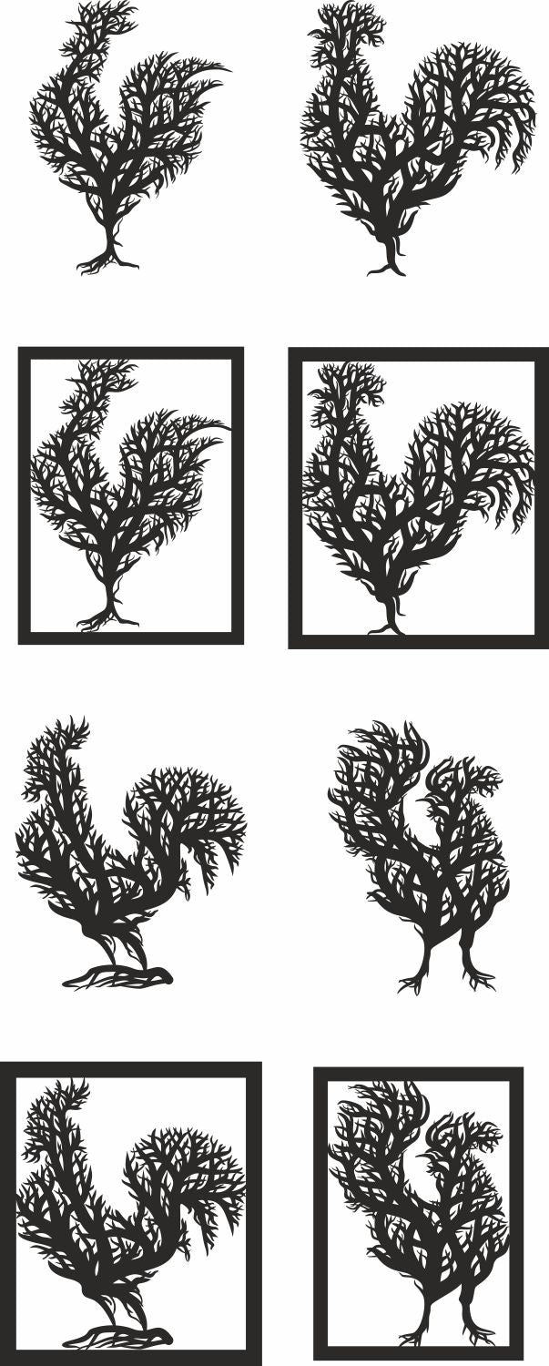 Svg Rooster Tree Wall Laser Cut and Glowgforge Vector Panel